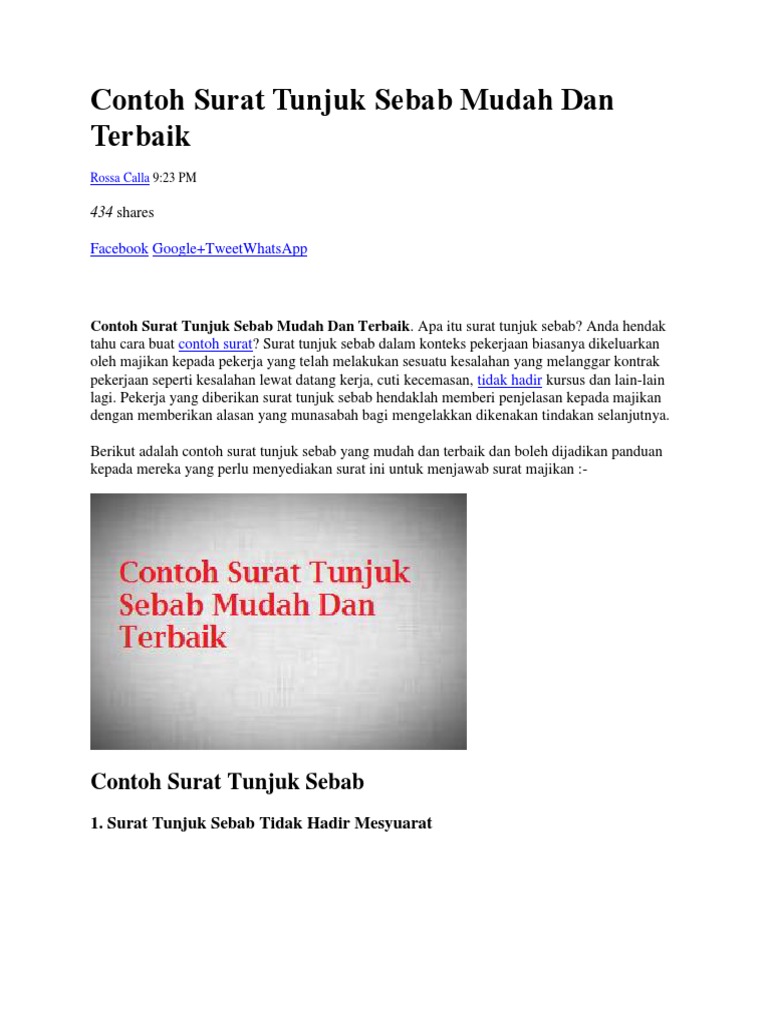 Contoh Surat Tunjuk Sebab Mudah Dan Terbaik Pdf